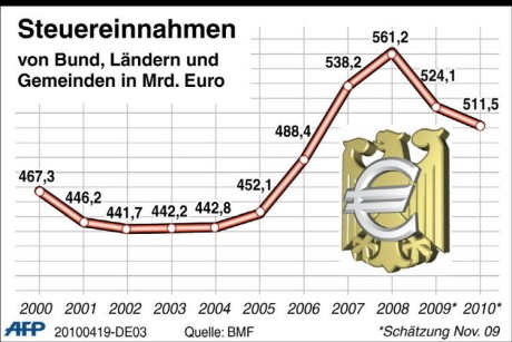 Doch dies kann auch sehr schnell kippen, wenn die Wirtschaft durch Fehlspekulation insgesamt in Schieflage gerät. Das nächste Bild zeigt die Steuereinahmen bis 2010.